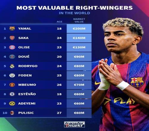 最近德国转会市场发布了世界范围右边锋身价榜,亚马尔以2亿欧元领跑,萨卡、奥利斯位列前排。18岁超新星的高预期与英超即战力同台比拼,争议点不少:伤停影响要不要打折?多位置使用算不算加分?这些身价到底值不值,谁被抬高、谁又被低估——看近期出勤与贡献,答案见下。
