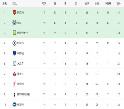 北京时间12月7日凌晨,英超第15轮结束了多场比赛,阿森纳客场1-2遭维拉绝杀,曼城主场3-0大胜桑德兰,切尔西客场0-0打平伯恩茅斯,利物浦客场3-3被利兹联绝平,接下来看看每场比赛的简单综述。
