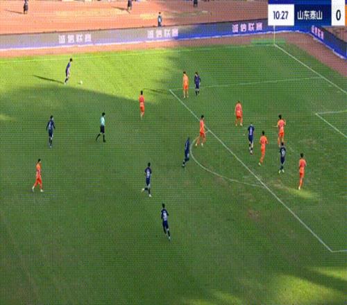 第45+4分钟,泽卡右路拿球横敲,刘洋包抄到位将球送进大门,山东泰山2-0领先。