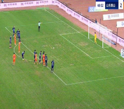第50分钟,山东泰山队获得点球,卡扎伊什维利主罚命中,改写比分到3-0领先。
