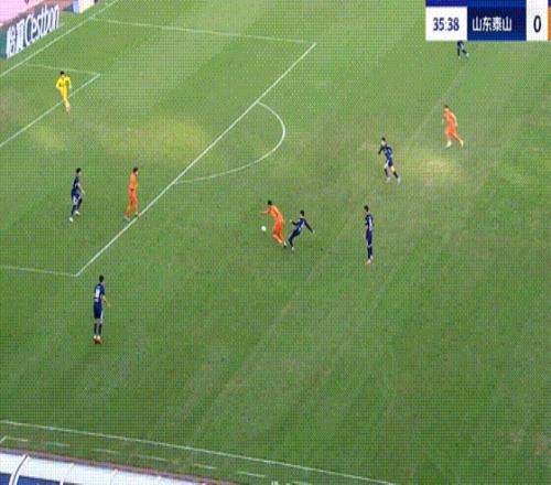 第38分钟克雷桑直塞,泽卡拿球突入禁区小角度射门打进,山东泰山客场1-0领先。